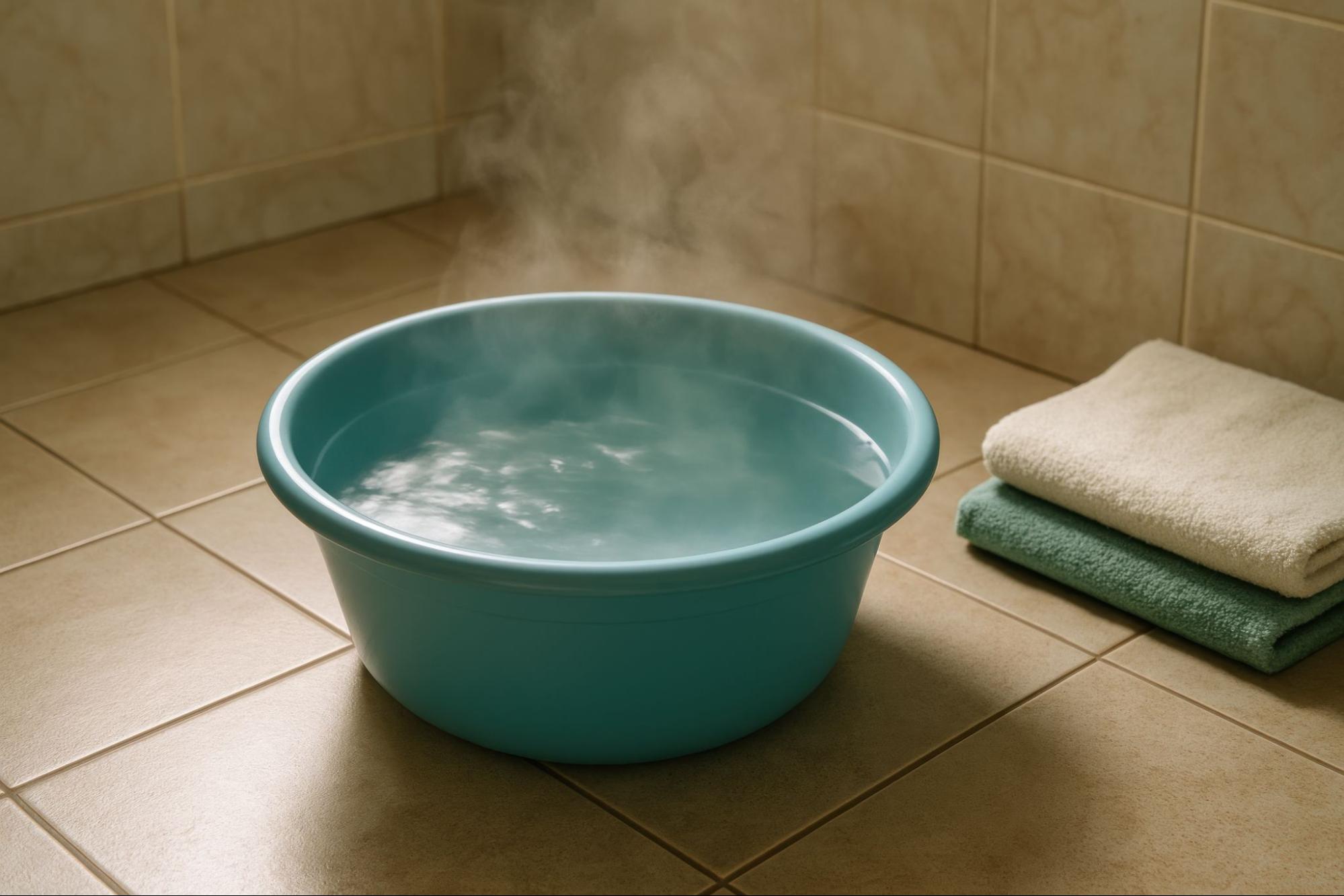 洗面器やバケツにお湯をためて、手や足を温めるだけで全身ぽかぽか!